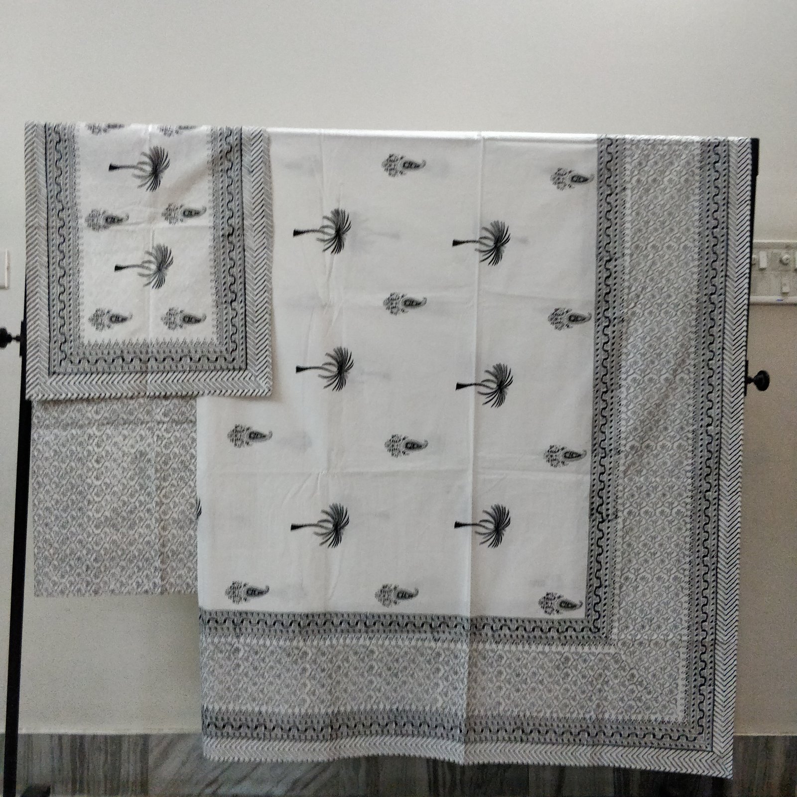 Hand Block Print Jaipuri Bedsheet Malmal Cotton Black and White