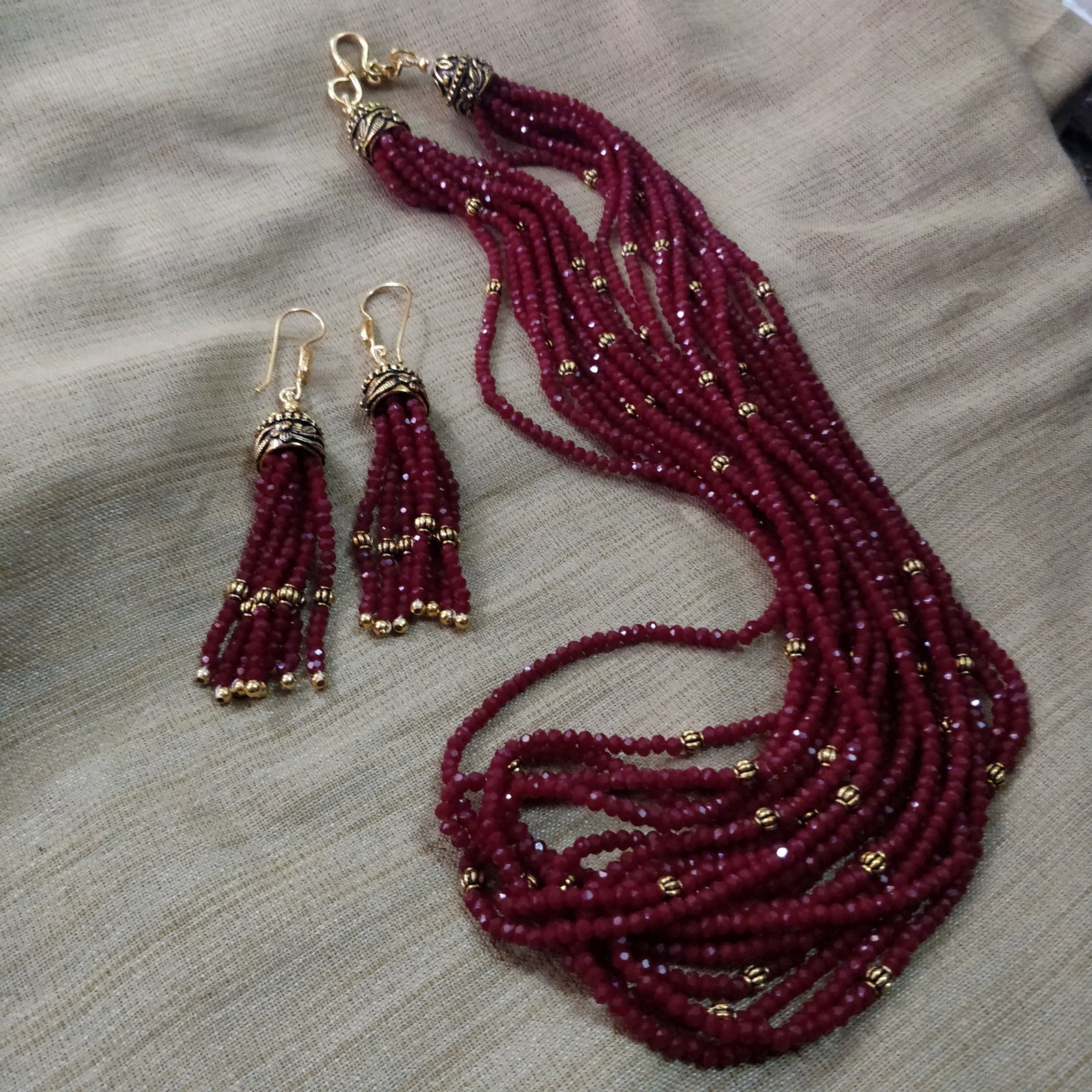 Maroon onyx stone multi-layered maala with gold sparkles ib between